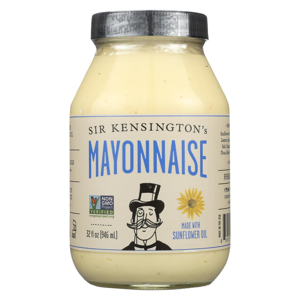 Sir kensington's classic mayonnaise made with sunflower oil is certified humane, certified gluten-free, kosher, and non-gmo project verified. Our mayonnaise is made with free range eggs, sunflower oil, water, lemon juice, distilled vinegar, salt, organic sugar, mustard flour, black pepper and citric acid. Each 32 fl. Oz. Jar contains 76 servings.