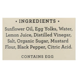 ingredients : • sunflower oil;egg yolks;water;lemon juice;distilled vinegar;salt;organic sugar;mustard flour;black pepper;citric acid
