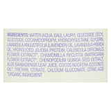 ingredients : water;aqua;eau;lauryl glucoside;decyl glucoside;cocamidopropyl hydroxysultaine;glycerin;lavandulaangustifolia;lavender;oil;lavandulahybrida oil;hydrolyzed jojoba protein;calendula officinalis flower extract;chamomilla recutita;matricarcia;flower extract;chenopodium quinoa seed extract;aloe barbadensis leaf juice. Cocos nucifera;coconut;triethyl citrate;calcium gluconate;citric acid