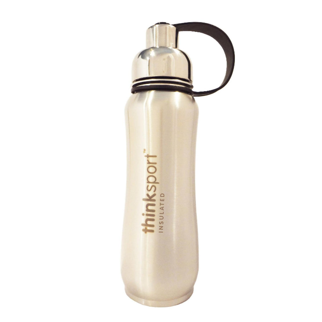 When we introduced the Thinksport bottle in 2007, most reusable bottles were made of polycarbonate material, which leaches Bisphenol-A (BPA). More recently, it has been shown that aluminum bottles with epoxy liners also leach this harmful chemical. So we first and foremost set out to find a safe material that adhered to our strict chemical policy. All Thinksport bottles are made of 18/8 medical- grade stainless steel. We then went on to design our bottles to be highly functional and great-looking too! All Thinksport bottles are super insulated to keep the contents cold or hot for hours. You can fill our bottle with ice and your favorite drink and enjoy a cold drink without the bottle sweating all over your gym bag, backpack, or desk. All of our bottles also feature a wide mouth opening (for ease of filling and cleaning) and a smaller polypropylene spout (for convenient drinking). Weve also built in unique functionality like an interior mesh filter that keeps ice from blocking the drinking spout and allows users to brew tea on the go. So, you get a high-quality insulated sport bottle for about the same price as the other guys basic single-walled bottles. Thinksport bottles are available in multiple sizes and colors.