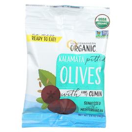 Mediterranean Organic Olives - Organic - Kalamata - Pitted - With Cumin - Snack Pack - 2.5 Oz - Case Of 12