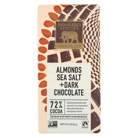 Endangered Species Natural Chocolate Bar - Dark Chocolate - 72 Percent Cocoa - Sea Salt And Almonds - 3 Oz Bars - Case Of 12