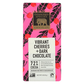 Endangered Species Natural Chocolate Bars - Dark Chocolate - 72 Percent Cocoa - Cherries - 3 Oz Bars - Case Of 12