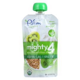 Plum Organics Essential Nutrition Blend - Mighty 4 - Spinach Kiwi Barley Greek Yogurt - 4 Oz - Case Of 6