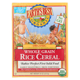 Earth's Best Organic Whole Grain Rice Infant Cereal - Case Of 12 - 8 Oz.