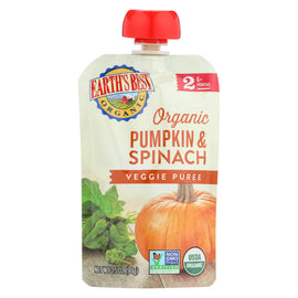 Earth's Best Organic Pumpkin And Spinach Baby Food Puree - Stage 2 - Case Of 12 - 3.5 Oz.