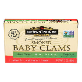 Crown Prince Clams - Smoked Baby Clams In Olive Oil - Case Of 12 - 3 Oz.
