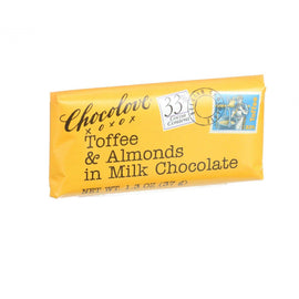 Chocolove Xoxox Premium Chocolate Bar - Milk Chocolate - Toffee And Almonds - Mini - 1.3 Oz Bars - Case Of 12