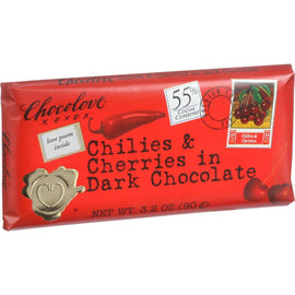 Chocolove Xoxox Premium Chocolate Bar - Dark Chocolate - Chilies And Cherries - 3.2 Oz Bars - Case Of 12