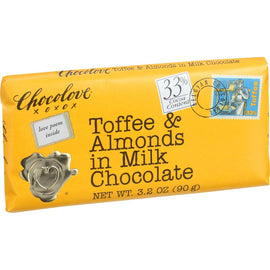Chocolove Xoxox Premium Chocolate Bar - Milk Chocolate - Toffee And Almonds - 3.2 Oz Bars - Case Of 12