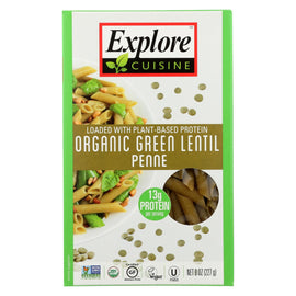 Explore Cuisine Organic Green Lentil Penne - Lentil Penne - Case Of 6 - 8 Oz.