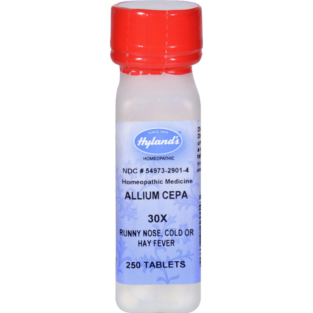 Hyland's Allium Cepa 30x Description: Runny Nose Beginning stages of cold with sneezing and streaming eyes. Watery discharge irritates nose, often accompanied by laryngitis with raw sensation down into chest. Disclaimer These statements have not been evaluated by the FDA. These products are not intended to diagnose, treat, cure, or prevent any disease.